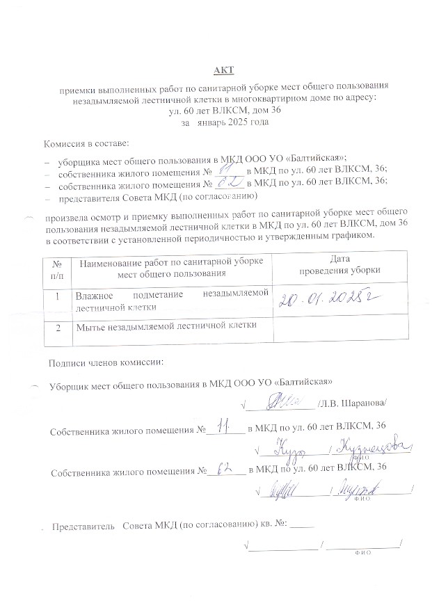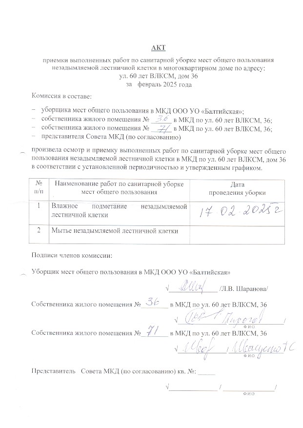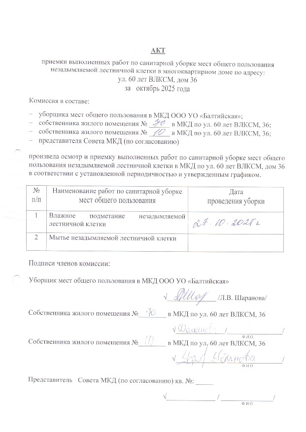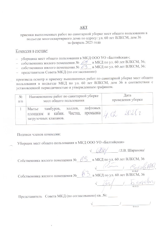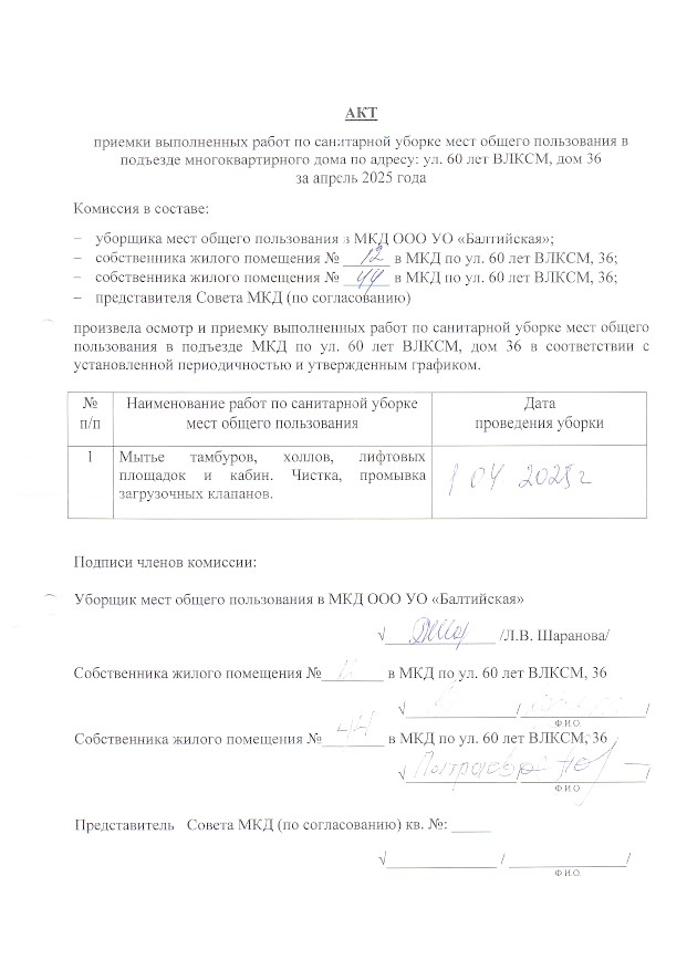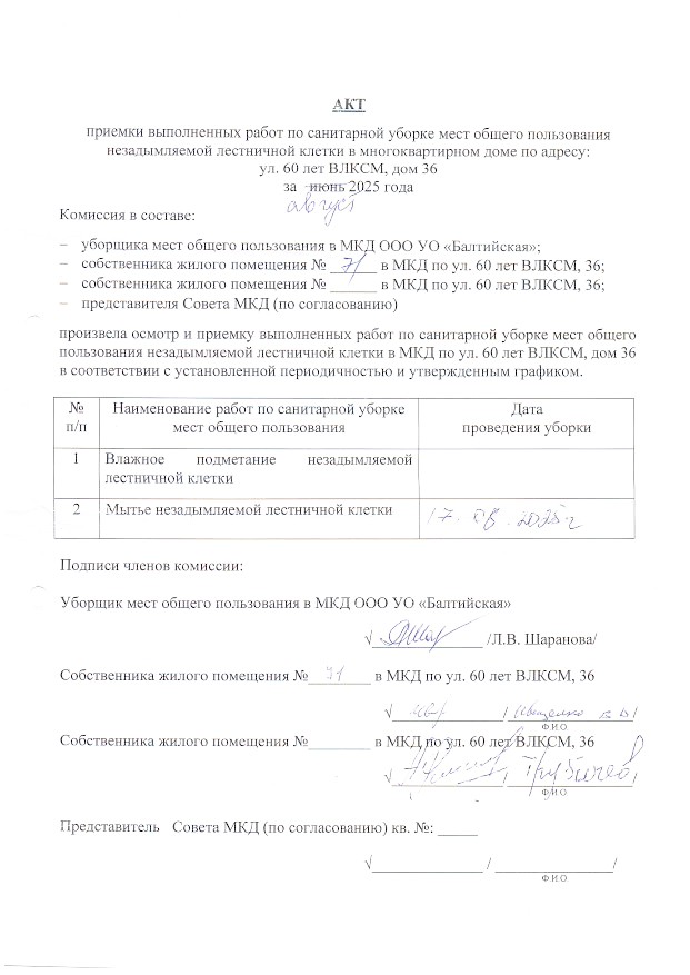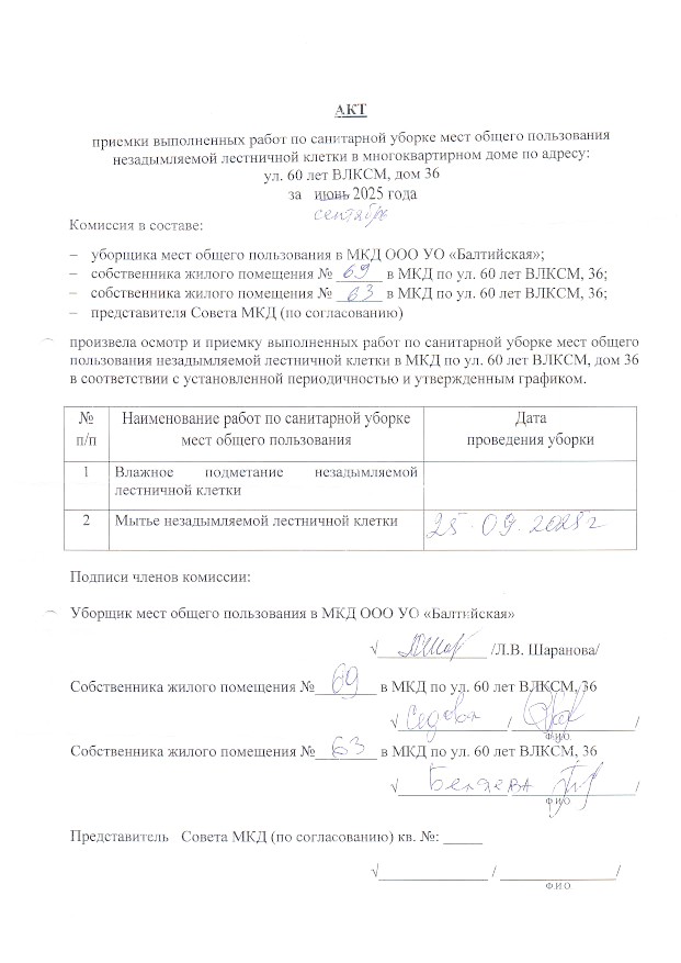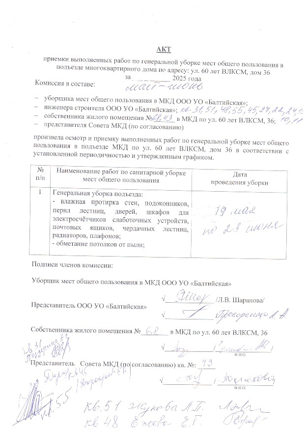 Акты уборки лестничных клетов и генеральной уборки за 2025 год