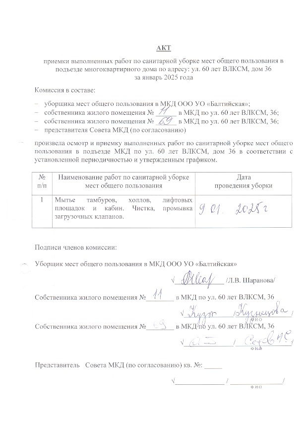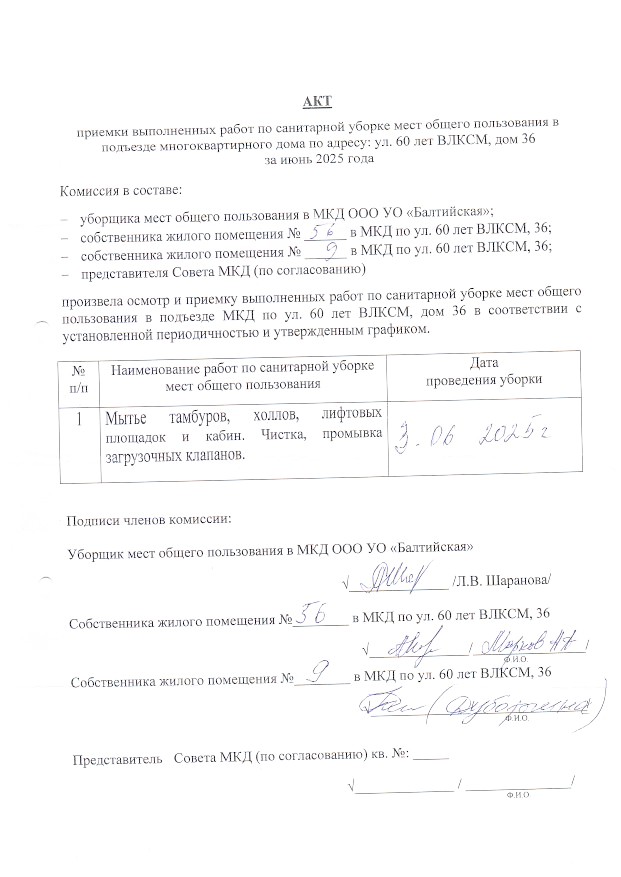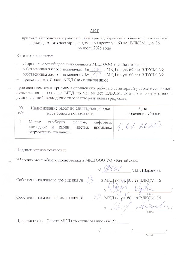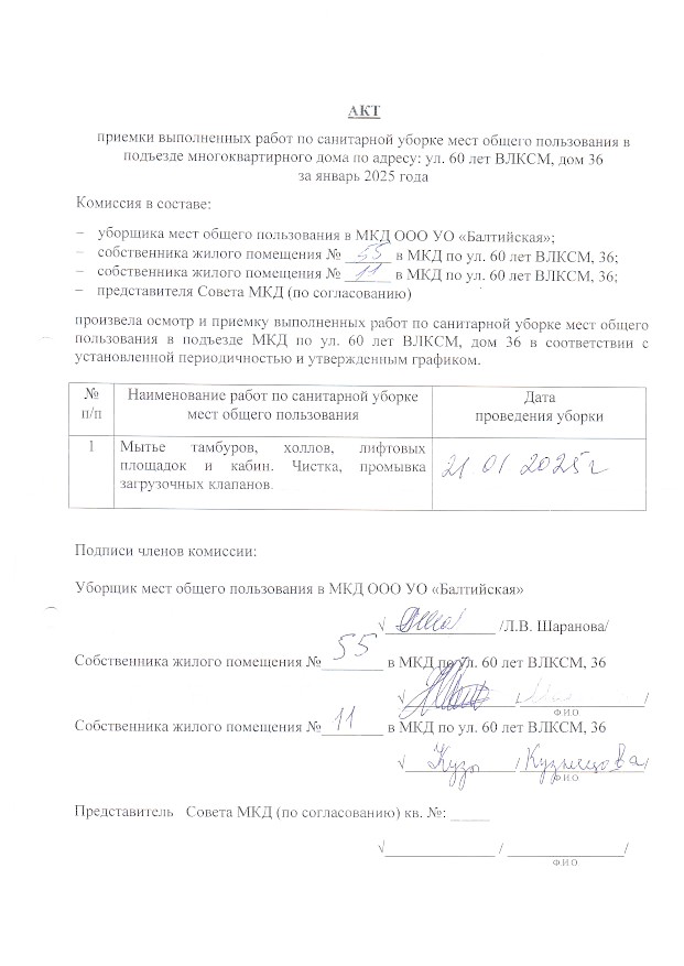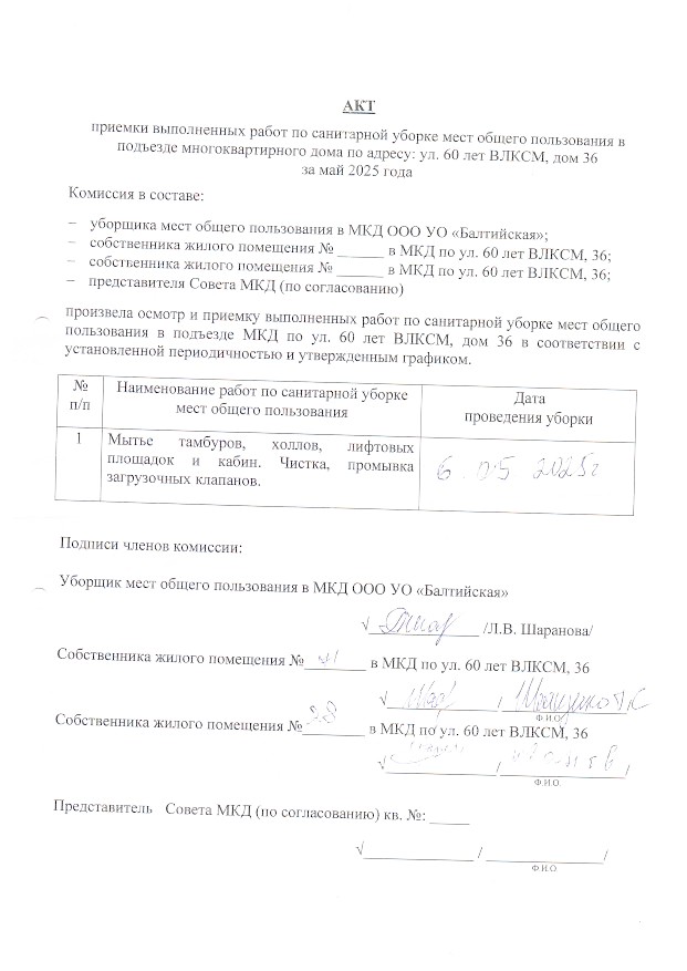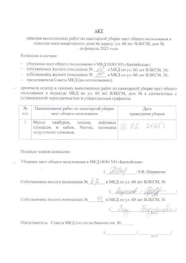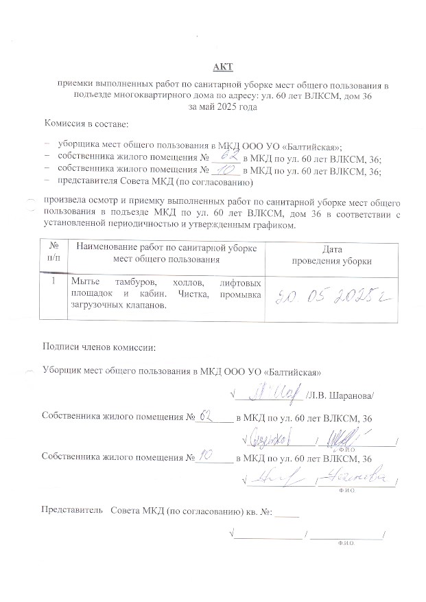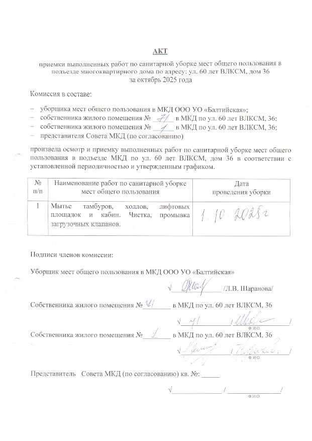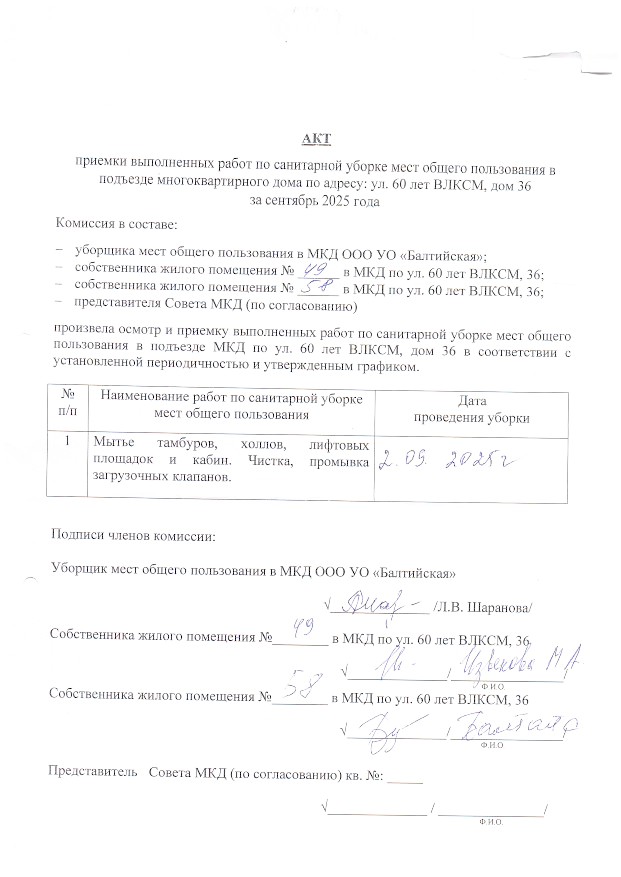 Акты уборки лестничных клетов и генеральной уборки за 2025 год