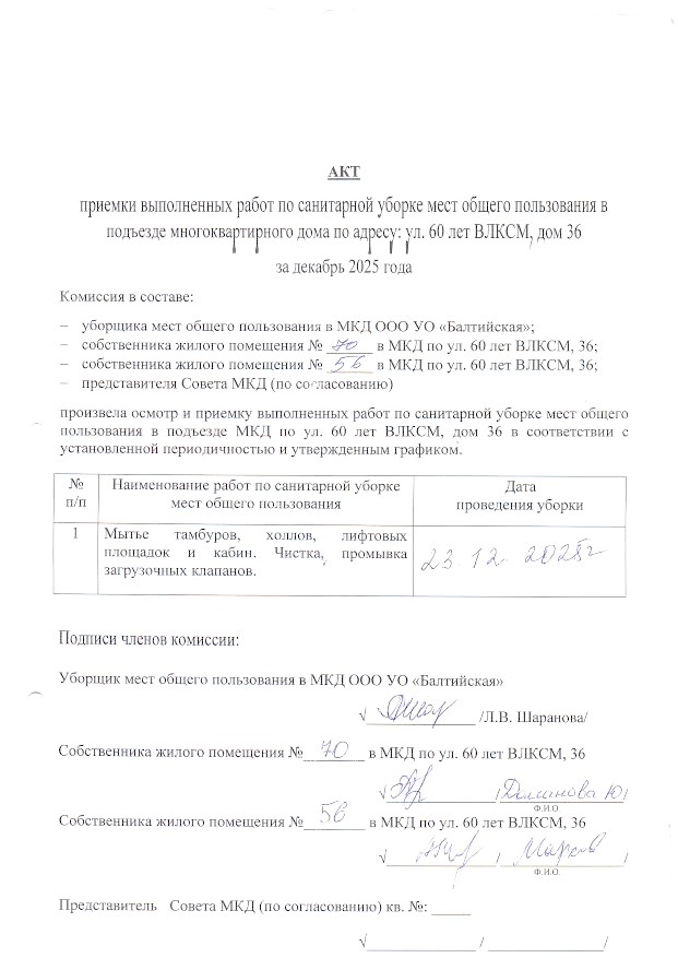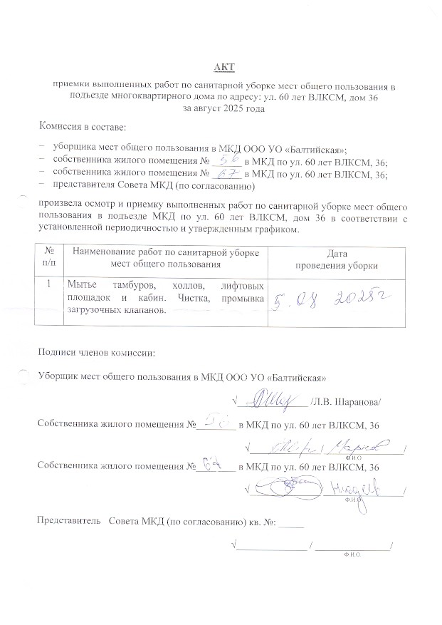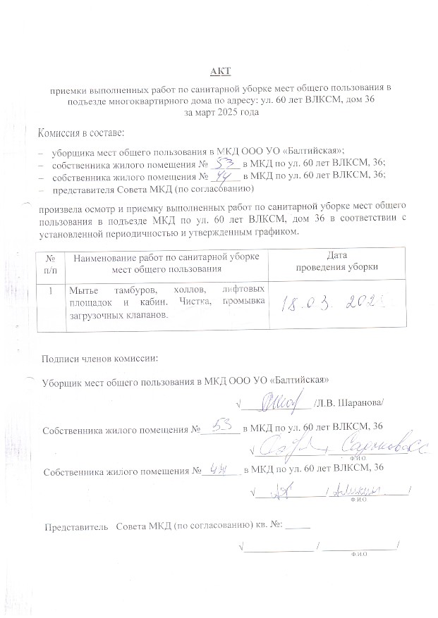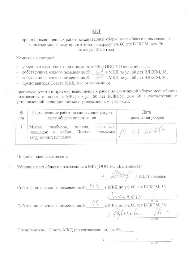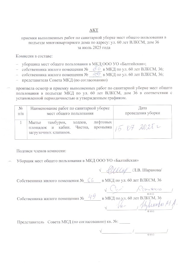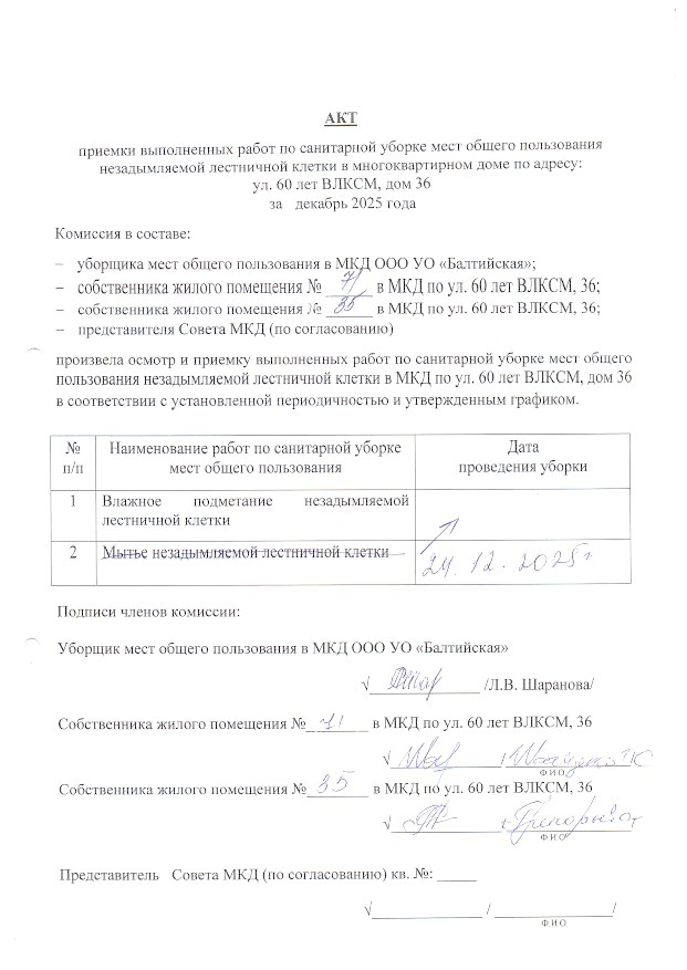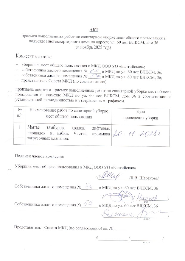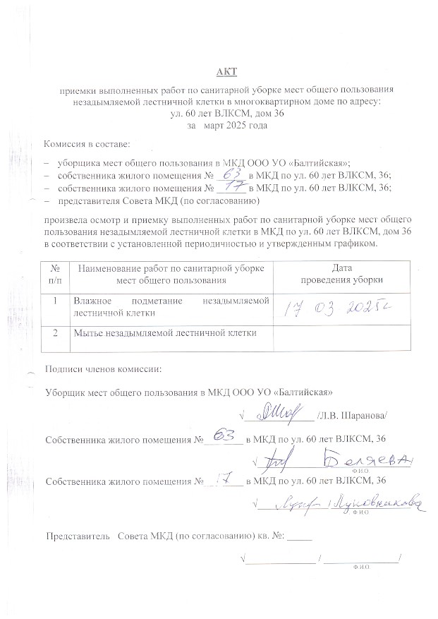 Акты уборки лестничных клетов и генеральной уборки за 2025 год